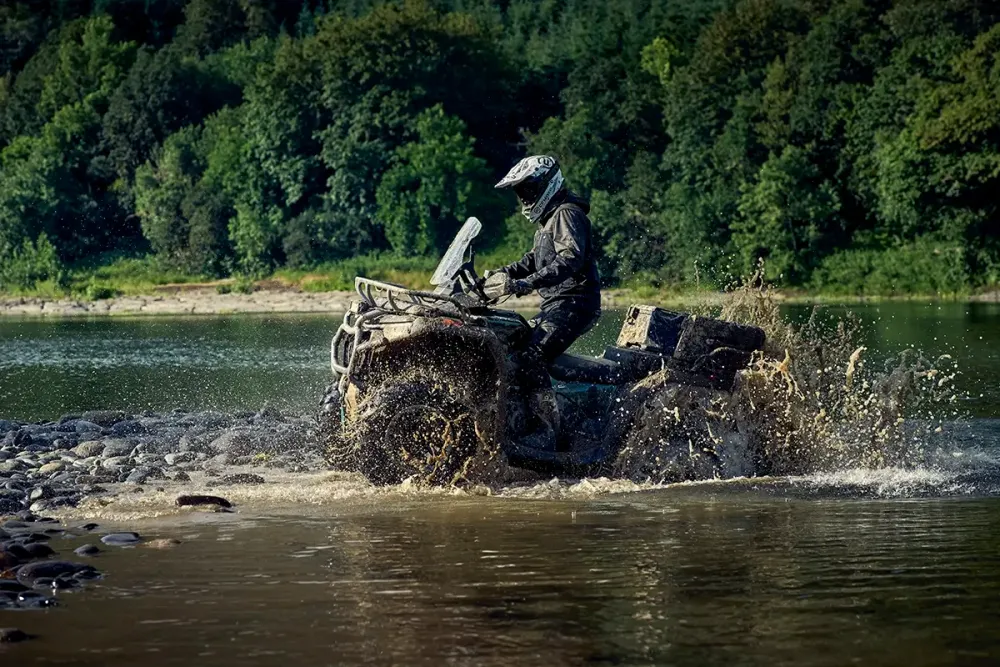 Przednie zawieszenie z podwójnymi wahaczami A i tylne zawieszenie z wahaczami wleczonymi zapewniają przyczepność i płynną jazdę nawet w najtrudniejszym terenie. W pełni regulowane amortyzatory gazowe typu piggyback pozwalają dostosować jazdę do pracy lub zabawy, jakie przyniesie Ci dzień. Dostosuj zawieszenie do lżejszych ładunków lub do przewożenia pełnych walizek podróżnych i pasażera. CFORCE 1000 OVERLAND ma wszechstronność, która poradzi sobie ze wszystkim.