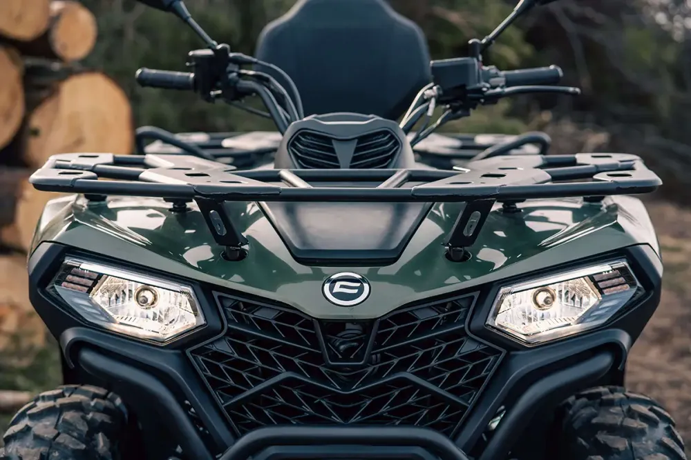 Wygląd jest odważniejszy, ale nadwozie zachowuje kompaktowy profil. Agresywne DNA CFORCE'a jest widoczne już na pierwszy rzut oka, dzięki światłom do jazdy dziennej LED i solidnemu grillowi zintegrowanemu z przednimi osłonami. Rozstaw osi pozostaje ten sam, a ogólna sylwetka zostaje wydłużona, nadając CFORCE 450L bardziej dominującą prezencję.